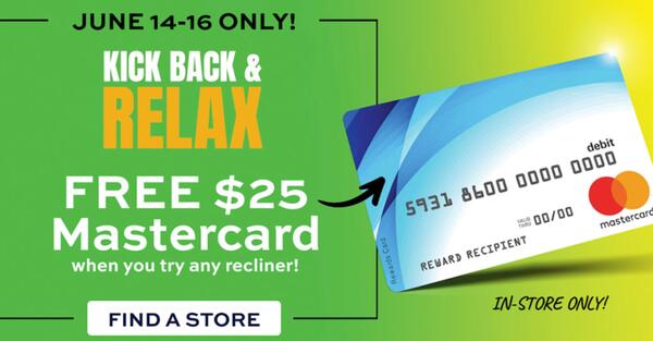 Shop at Slumberland Furniture and enjoy an exclusive offer: get a FREE $25 Mastercard Gift Card! For a limited time, when you make a purchase at Slumberland, you'll receive a $25 Mastercard Gift Card to use however you like. Whether you're upgrading your home with new furniture or simply adding some stylish touches, this gift card is the perfect way to save even more. Don’t miss out on this fantastic opportunity to enhance your home and get rewarded. Visit Slumberland Furniture today and claim your free gift card!Â
