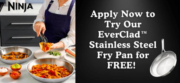 The Ninja Everclad Fry Pan sample offer gives participants the chance to apply for a free 12" fry pan. By answering a few questions on the linked page, you can be selected to receive this high-quality kitchen item without any obligation or payment. If chosen, the company will contact you via email to confirm shipping details. This is part of a sampling and feedback program. Visit the official offer page for more information and to apply.